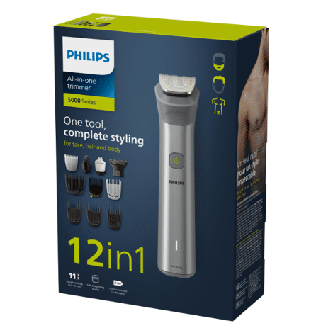 Deze alles-in-één trimmer biedt 12 hulpstukken voor al uw scheer- en trimbehoeften. Trim en style uw gezichtshaar, knip uw haar en verwijder lichaamshaar.
